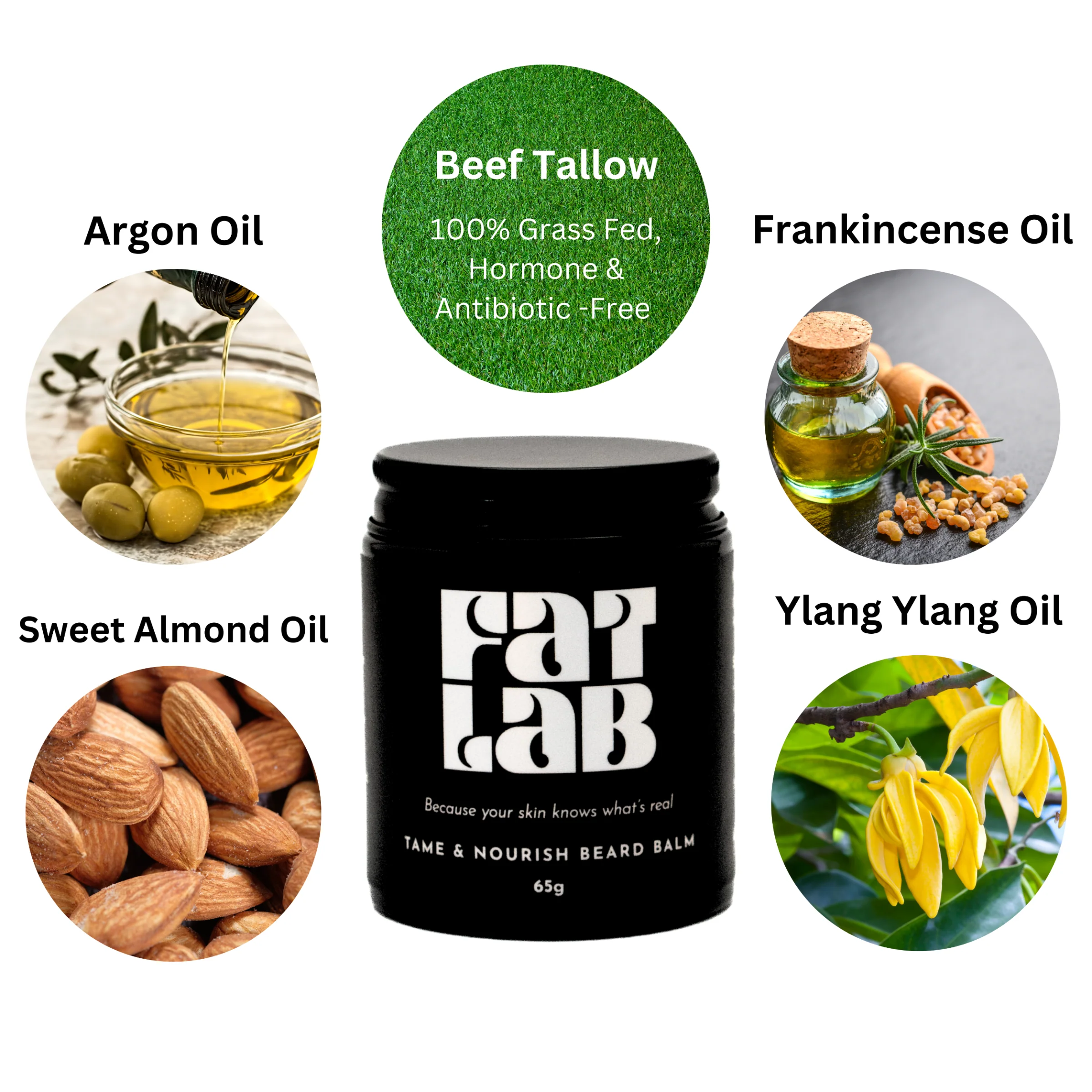 This balm is more than just a beard conditioner—it’s a complete solution for beard health and maintenance. Beef tallow provides a deeply nourishing base that hydrates both hair and skin, while argan and sweet almond oils deliver shine and softness. Frankincense and ylang ylang oils stimulate hair growth and improve skin health, ensuring your beard is not only well-groomed but also thriving.